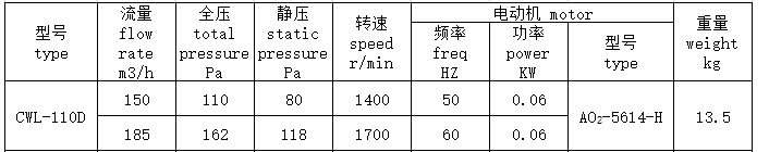 CWL-110D 舰船用小型离心通风机,为电机直联式结构,可制成卧式或立式。本型风机的机壳材质为Q235、叶轮采用L104铝板制成。叶轮为铆接组成,进风口和机壳为焊接结构。