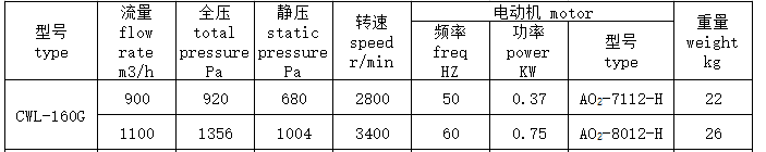 CWL-160G 船用小型离心通风机,配用A02-H舰船用三相微型步电动机,适用于380V/220V或440、50/60Hz的场所。